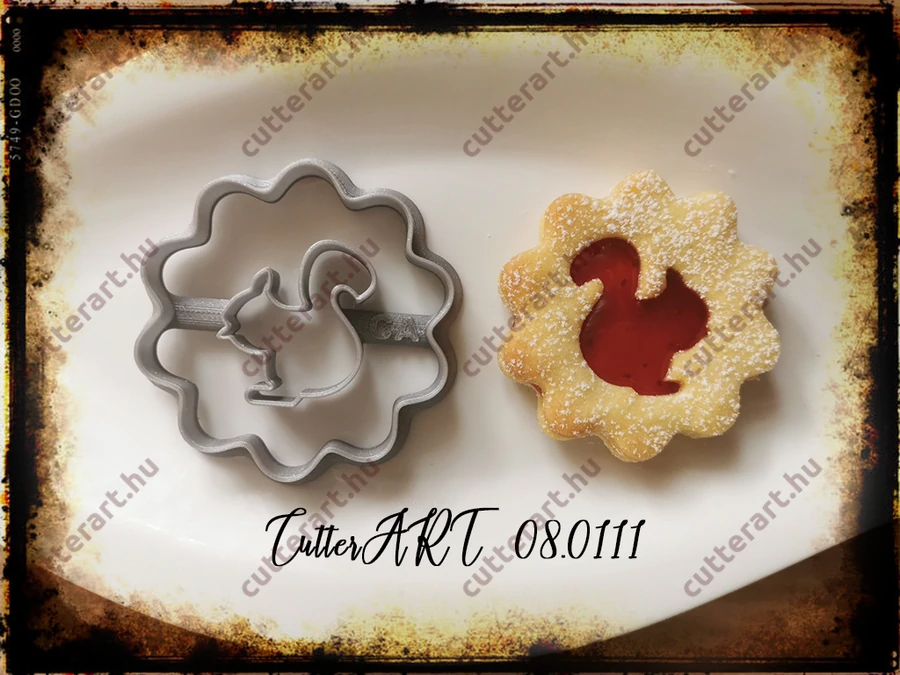Egyedi megjelenésű linzer Mókus kiszúró, átmérője 6cm. Az ár csak a forma kiszúrót tartalmazza a képen látható alap kiszúrót nem. A kategóriában található linzer kiszúrók szegély mintája megegyezik ezért elég1 darab alap kiszúrót vásárolnod. A szállításra kerülő termék a megjelenített termék színétől eltérő lehet.