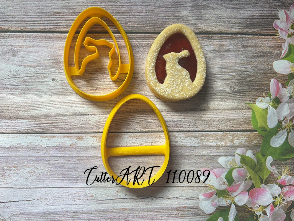 Egyedi megjelenésű linzer Tojásban nyúl ülő kiszúró. A feltüntett ár a forma kiszúróra vonatkozik, a hozzá tartozó alap kiszúrót a kategoríá "Tojás alap" kiszúró néven találjátok.